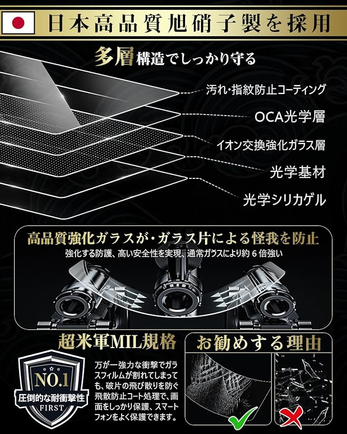 Boesklenn 対応 iPhone 17 Pro ガラスフィルム 覗き見防止【覗き見防止・日本製AGC旭硝子・硬度9H】 耐衝撃 高透過率 飛散防止 自?吸着 極細黒縁 対応 iPhone 17 Pro ガラスフィルム