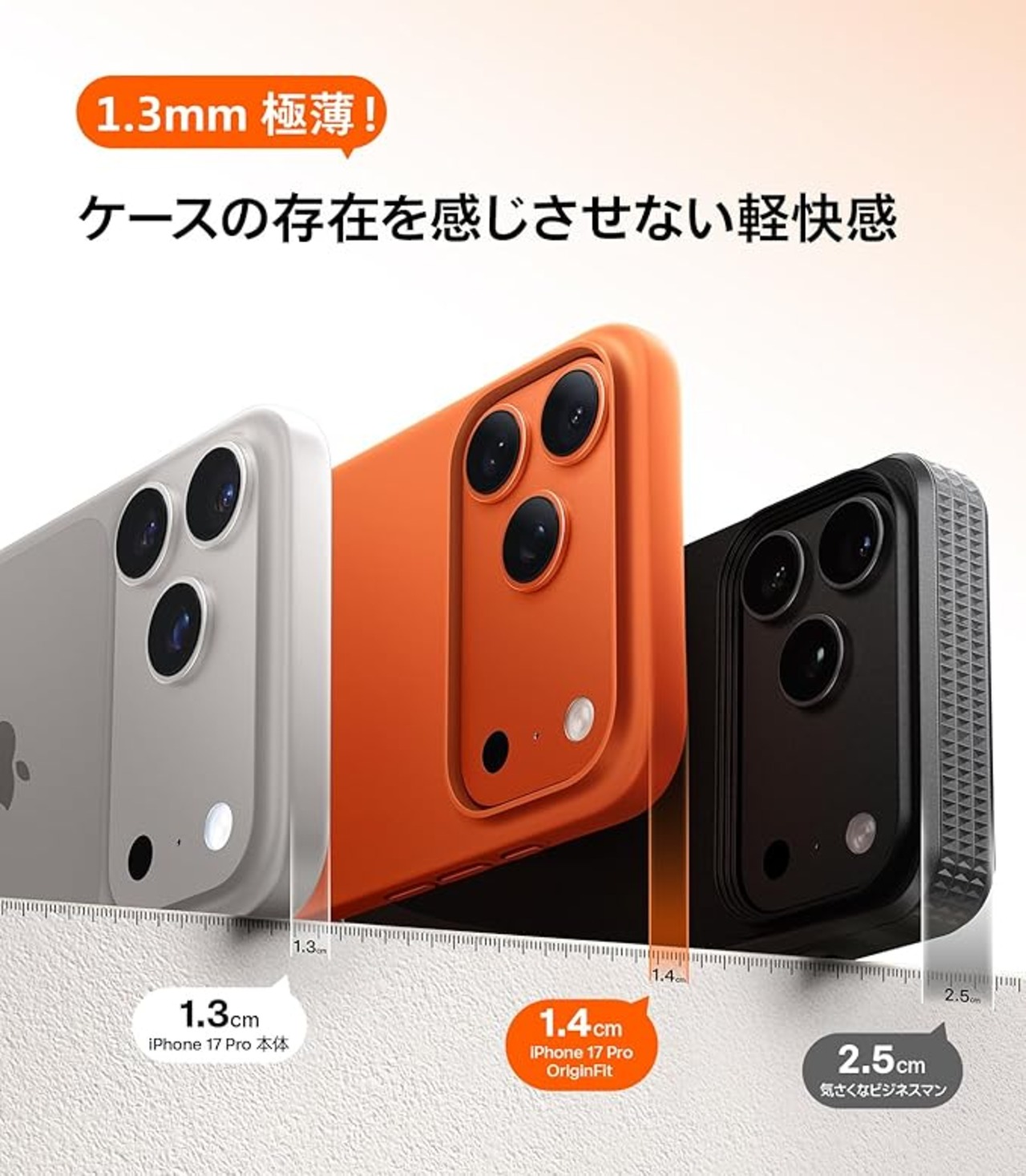 【超薄と極軽量】対応機種:For iPhone 17 Pro ケース (6.3インチ) TORRASが誇る、クラシックの逸品 [OriginFit] ケース は厚さわずか0.039インチ、重さ20gで、iPhone 17 Pro の使用感をそのまま残し、スマホ の薄さを損なわない。スマホに重さを増やしたり、余分なボリュームを与えることはなく、ケースを装着していることがほとんど感じられない。超薄型の背面パネルは、スマホ最新のリバースマグネット式ワイヤレス充電機能に一切影響を与えません。スマホ用 ケ
