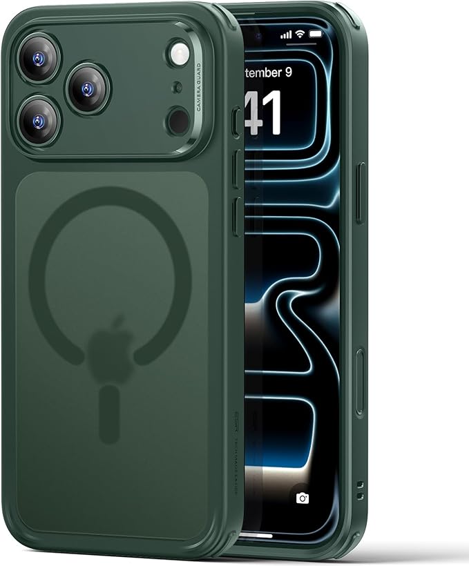 【3倍米軍MIL規格・MagSafe対応】ESR iPhone 17 Pro ケース 米軍保護工学 ワイヤレス充電/25Wの高速充電に対応 傷に強い背面 衝撃吸収 耐黄変 いPhone17Pro ケース エアガードガードコーナー カメラコントロールカバー ストラップホールあり iPhone17Pro用 ハイブリッドシリーズ フロストグリーン