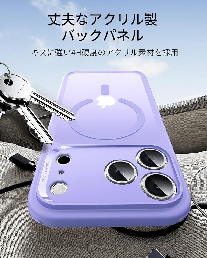 【3倍米軍MIL規格・MagSafe対応】ESR iPhone 17 Pro ケース 米軍保護工学 ワイヤレス充電/25Wの高速充電に対応 傷に強い背面 衝撃吸収 耐黄変 いPhone17Pro ケース エアガードガードコーナー カメラコントロールカバー ストラップホールあり iPhone17Pro用 ハイブリッドシリーズ フロストパープル