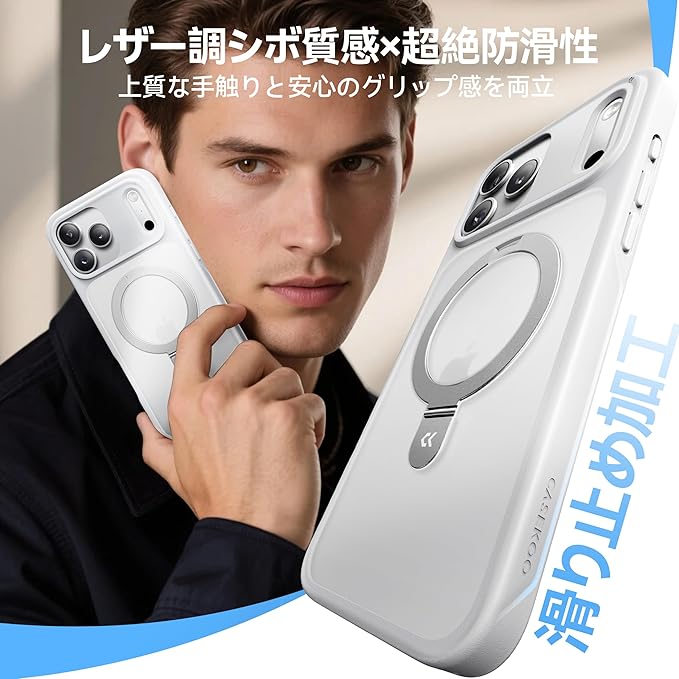 【9年の匠心開発!4つの機能を一度に実現】CASEKOO for iPhone 17 Pro ケース 米軍MIL規格 横縦両立 カメラモジュール強化保護 指紋防止 マット仕上げ 最大25W急速充電対応 MagSafe対応 黄変防止 半透明 ストラップホール付き ワイヤレス充電対応 特許設計「MagicStand」6.3 (ホワイト)