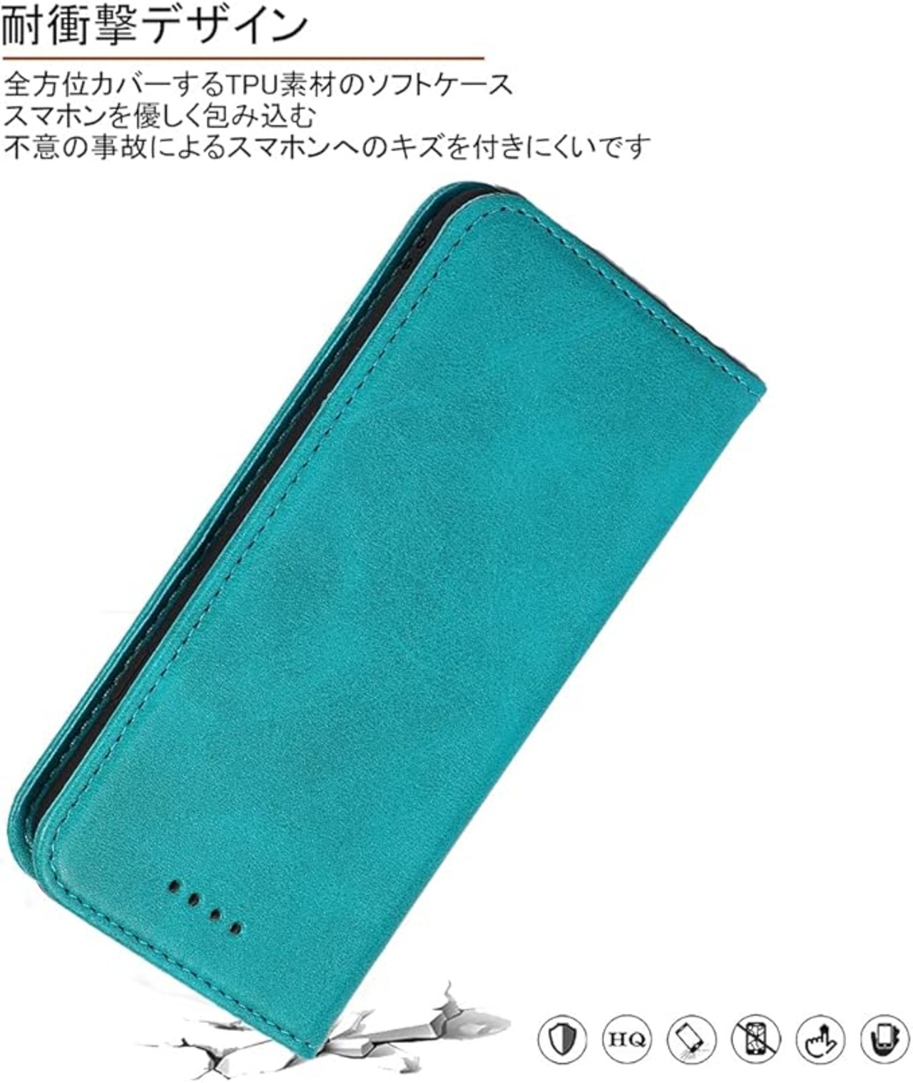 ?【素材改良】本商品の外部カバーは牛革繊維を人工合成という生産プロセスで仕上げられた合革で、普通の合革より、性能上の 耐熱性、耐摩擦が一層アップされた。表面生地が硬すぎず、やわすぎず、ちょっと良い手触りです。手汗が出てきても滑りにくく、ケースにも変な匂いがございません。インなケースは弾力性のあるソフト素材を採用しており、四角までしっかり保護でき、実用性高い手帳型です。