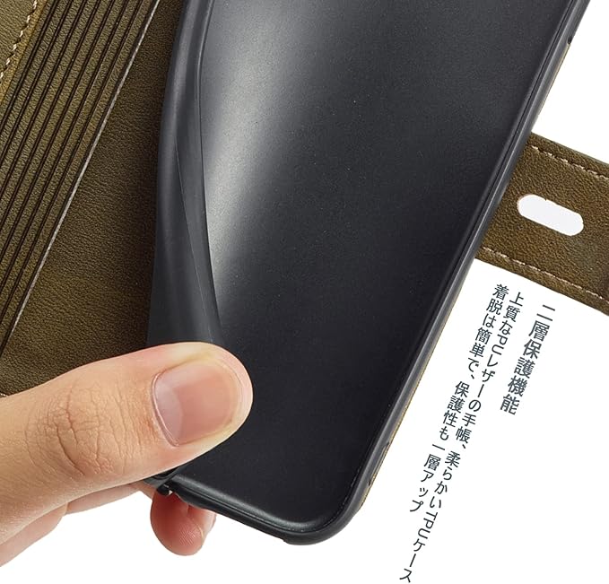 ?【耐衝撃性】耐熱性と柔軟性を誇る上質なPUレザーで作られ、手触り良い、落下時の衝撃を効率的よく吸収できるようにケースの各コナーの裏側が設計されています。丈夫でほど良い厚みで、落としてもスマホをきちんとお守れます。