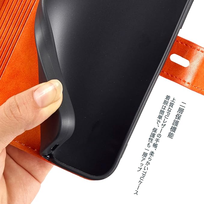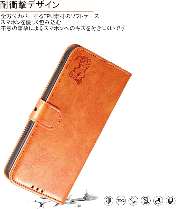 ?【耐衝撃性】耐熱性と柔軟性を誇る上質なPUレザーで作られ、手触り良い、落下時の衝撃を効率的よく吸収できるようにケースの各コナーの裏側が設計されています。丈夫でほど良い厚みで、落としてもスマホをきちんとお守れます。