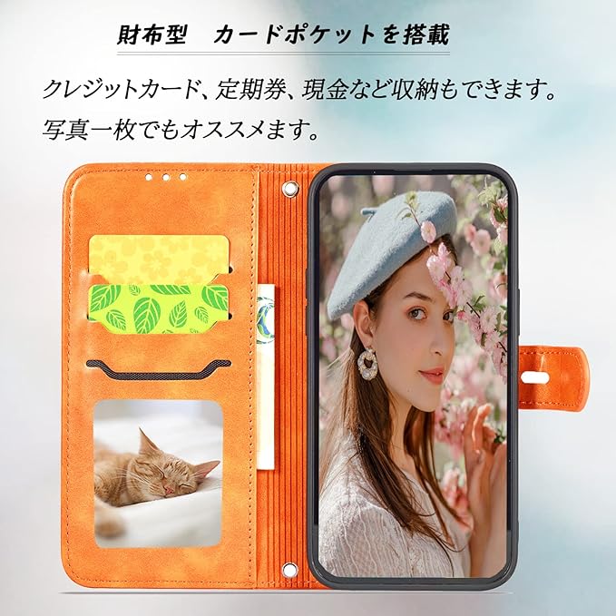 iPhone17Pro ケース 手帳型 iPhone17 Pro カバー あいふぉん手帳型 アイフォン 携帯ケース iPhonecase スマホケース スマホカバー 携帯カバー ストラップ付き カード収納 財布型 ベルトマグネット スタンド機能 かわいい 猫 耐衝撃 全面保護 (iPhone 17 Pro 対応) オレンジ