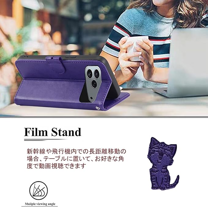 iPhone17Pro ケース 手帳型 iPhone17 Pro カバー あいふぉん手帳型 アイフォン 携帯ケース iPhonecase スマホケース スマホカバー 携帯カバー ストラップ付き カード収納 財布型 ベルトマグネット スタンド機能 かわいい 猫 耐衝撃 全面保護 (iPhone 17 Pro 対応) パープル