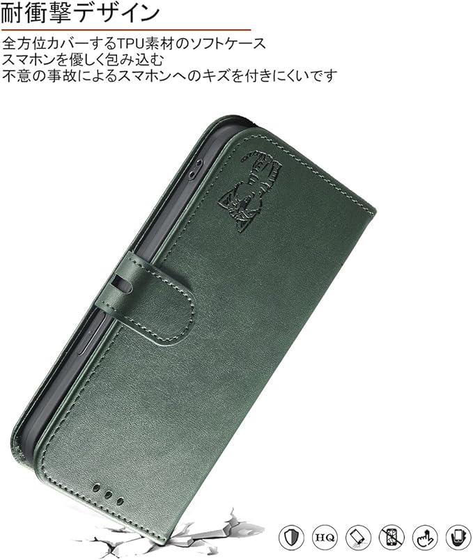 ?【耐衝撃性】耐熱性と柔軟性を誇る上質なPUレザーで作られ、手触り良い、落下時の衝撃を効率的よく吸収できるようにケースの各コナーの裏側が設計されています。丈夫でほど良い厚みで、落としてもスマホをきちんとお守れます。
