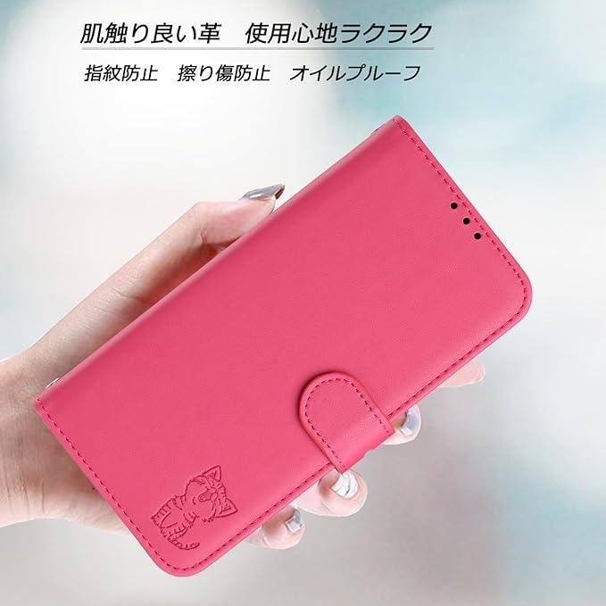 ?【耐衝撃性】耐熱性と柔軟性を誇る上質なPUレザーで作られ、手触り良い、落下時の衝撃を効率的よく吸収できるようにケースの各コナーの裏側が設計されています。丈夫でほど良い厚みで、落としてもスマホをきちんとお守れます。
