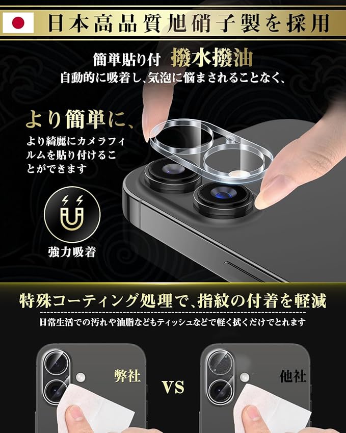 Boesklenn 対応 iPhone 17 カメラフィルム iPhone 17 用 レンズカバー 日本旭硝子素材製・硬度9H・全面保護・耐衝撃・高透過率・露出オーバー防止・ケースに干?なし 17 カメラ保護カバー【2枚入り】