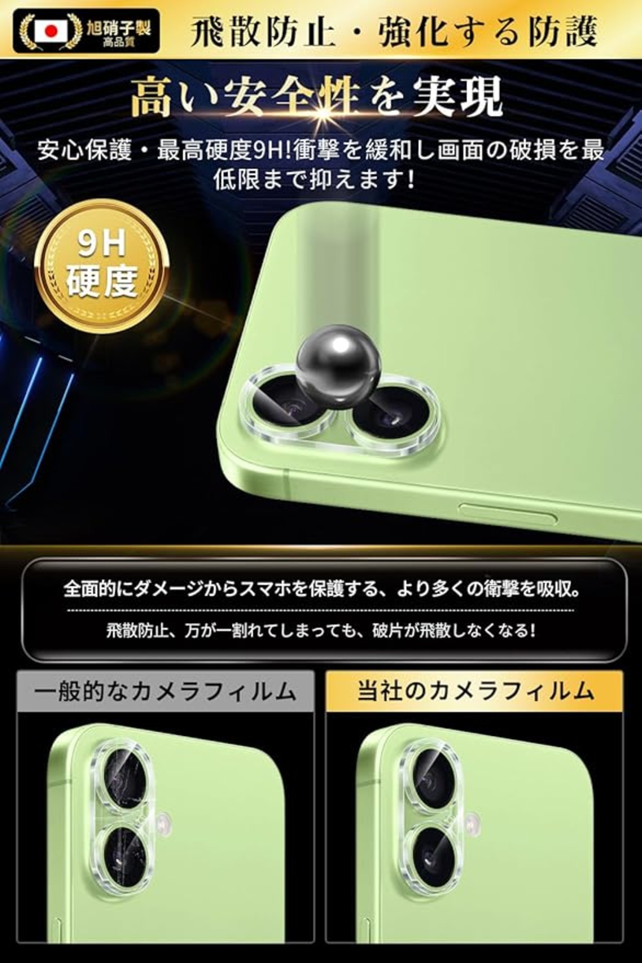 【日本旭硝子素材採用!圧倒的な耐衝撃性・飛散防止!】徹底的にこだわった品質、信頼できる日本製旭硝子素材を採用、通常カメラフィルム などと比べ、強度、耐傷性、質感のすべてにおいて優れた性質を持ちます。安心してご使用いただけるように、一