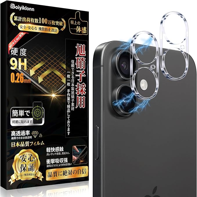 Boiyiklonn 対応 iPhone17 カメラフィルム iPhone 17 用 カメラカバー (2枚)【日本旭硝子製/露出過度を防ぐ】いphone17 用 カメラ保護フィルム 2眼レンズ保護 防塵 カメラレンズ保護 硬度9H 耐衝撃 高透過率 自動吸着 気泡防止 飛散防止 撥水撥油 アイフォン 17 用 レンズフィルム
