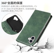 KWATUNG iPhone 17 用 ケース 手帳型 アイフォン 17 用 ケース 手帳型 おしゃれ あいふおん17用 手帳型ケース 肌感レザー 内蔵マグネット 耐衝撃 iPhone 17用 スマホケース 手帳型 カード収納 スタンド機能 全面保護 アイホン17 用 6.3インチ グラスグリーン