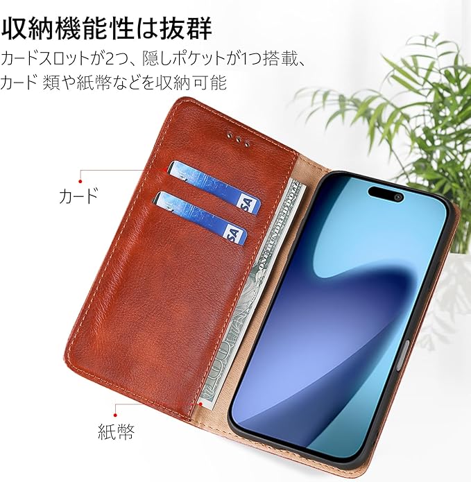 【多機能付き】iphone 17用 手帳型ケースは自由に調整できる横置きスタンド機能が付き、長時間の動画視聴でも手に持つ必要がなく。しかも、iPhone 17用 手帳ケース内側には二つのカード入れポケットがつき、置くことができますカード類や紙幣 、名刺などなど、普段の生活に便利をもたらします。