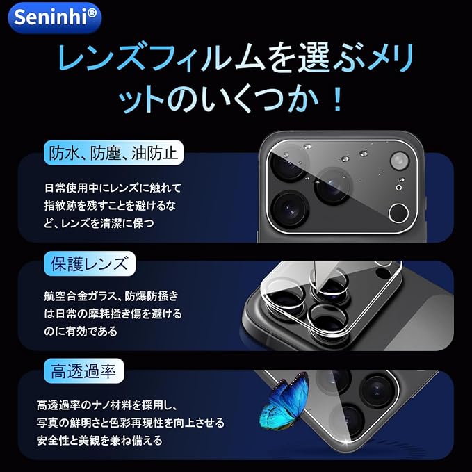対応 iPhone 17 Pro Max ガラスフイルム 用の ガイド枠付き 【 iPhone17ProMax フイルム(2枚入り) ? カメラフィルム(2枚入り)? ガイド枠 】 いpほね17promax 強化ガラス 液晶 アイフォン17 pro max 保護フィルム 国産旭硝子素材 撥油性 超耐久 高光沢 超薄型 硬度9H 指紋防止 衝撃吸収 高透過率 飛散防止 貼り付け簡単 気泡なし 極薄 SENLX-TM17PM