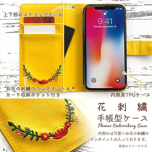 Xperia 10 II SO-41A SOV43 花刺繍 ケース カバー 手帳型 ケース カバー 【サンフラワーイエロー】 [内側黒TPU] SO-41Aケース SO-41Aカバー SOV43ケース SOV43カバー SO41Aケース SO41Aカバー Xperia10II 2 エクスペリア10II SO41A スマホケース スマホカバー 手帳型ケース 手帳型カバー 【NB】 yellow a
