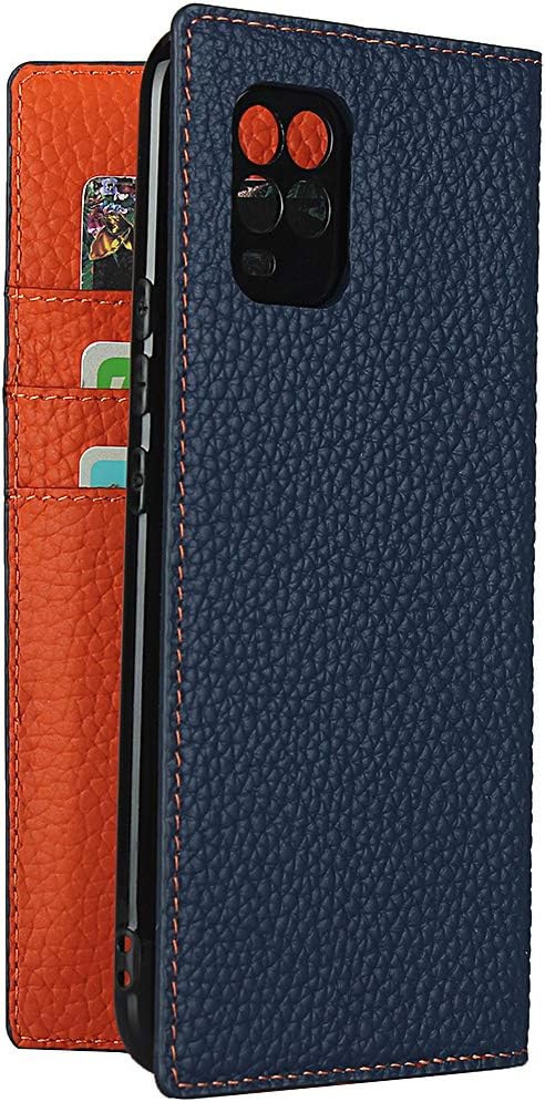 Eastwave for Xiaomi Mi 10 Lite 5G ケース 本革 Mi10 5g XIG01 手帳型 ケース 財布型 カバー 手帳式 牛革 本革 柔らかい 本皮 高質 スプラットホール付き スプラット同梱 内蔵マグネットカード収納 - ネイビー a
