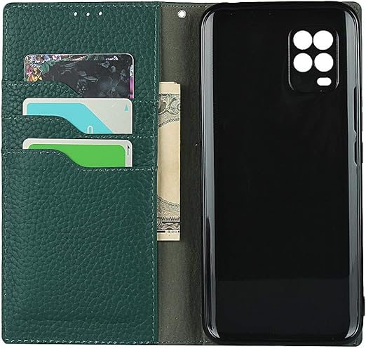Eastwave for Xiaomi Mi 10 Lite 5G ケース 本革 Mi10 5g XIG01 手帳型 ケース 財布型 カバー 手帳式 牛革 本革 柔らかい 本皮 高質 スプラットホール付き スプラット同梱 内蔵マグネットカード収納 - ダークグリーン a
