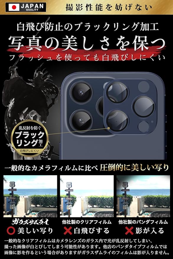 ガラスザムライ iPhone15 Pro 用 iPhone15 Pro Max 用 カメラフィルム メタル アルミ合金 保護フィルム いPhone 387-389-mc-bl ブルー a