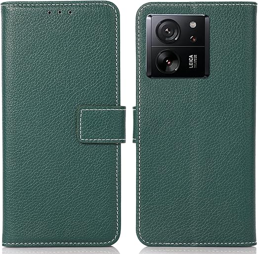 For Xiaomi 13T/13T Pro ケース 手帳型 13T プロ 財布型 高級PUレザー カード収納 大容量 3枚 横置きスタンド機能 内蔵マグネット開閉式 耐衝撃 全面保護 シンプルカバー ハンドメイド 汗や指紋防止 肌触り良い 360度保護 男女兼用 おしゃれ グリーン Rureu01 a