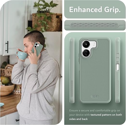 「米軍MIL規格・2層保護」TUDIA Redmi 13C 4G 用 ケース、「MergeGrip」2層保護 耐衝撃 滑り止め 超薄型TPU Redmi 13C 4G 対応 ケース (グリーンリリー) a