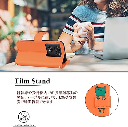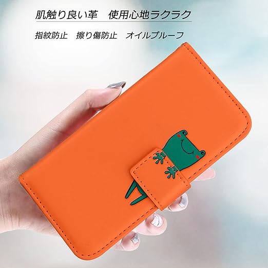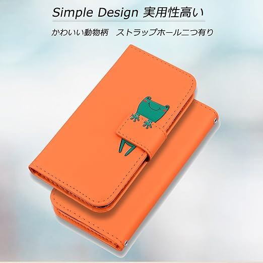 Xiaomi 13T XIG04 ケース 手帳型 Xiaomi 13T Pro 手帳型ケース スマホケース シャオミ 13T 手帳 13tプロ 携帯ケース xiaomi 13t case カバー レザー製 TPUケース 財布型 ベルトマグネット スタンド機能 カエル かわいい 動物柄 薄型 防水 耐久性 (Xiaomi 13T XIG04/Xiaomi 13T Pro 対応) オレンジ a