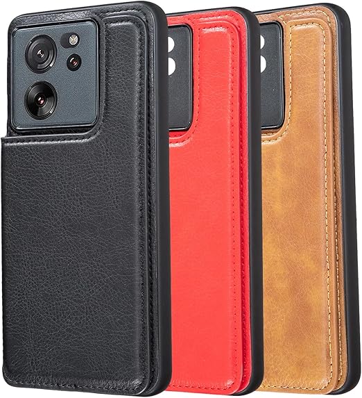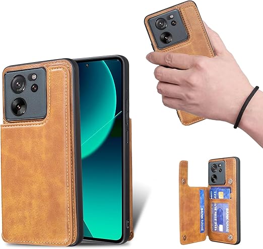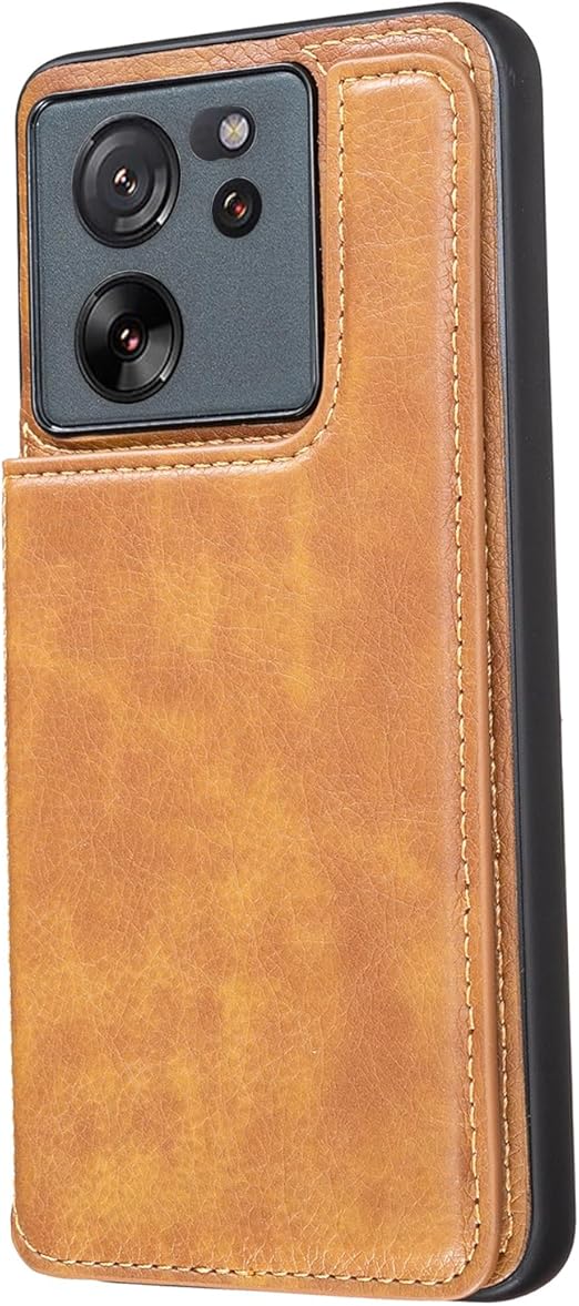 for Xiaomi 13T / Xiaomi 13T Pro ケース スタンド機能 ケース ICカード収納 カード 背面カード収納 左と右の電話ケースを反転、シンプルなレトロなファッション、防水と防汚電話ホルダー、多機能財布収納付き、PUレザー、TPUソフトインナー(ブラウン) a