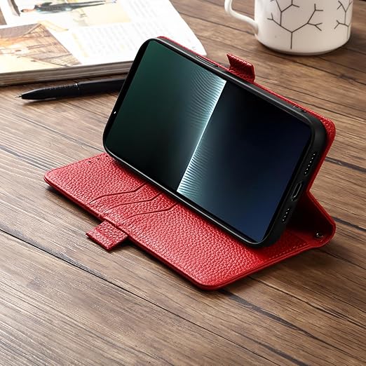 【2024 新登場! 高級シュリンクカーフレザー】Xperia 1 ケース 手帳型 本革 牛革 カード収納 サイドマグネット式 横置きスタンド機能付き 上下にストラップホール付き ストラップ付 エクスペリア ワン docomo SO-03L au SOV40 softbank 901SO 対応 ケース 柔軟なTPU素材 耐衝撃 全面保護[Noble Series](Xperia 1、レッド) a