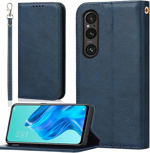 適用 Xperia 1 VI SO-51E SOG13 A401SO ケース 手帳型 エクスペリア 1 VI ストラップ ケース エクスペリア 1 6 手帳 スマホケース Xperia1VI 手帳型ケース フリップケース エクスペリア16ケース 【BonwFzin】 PU レザー ストラップケース ストラップホール付き マグネット フリップ カード カード入れ 落ち着いた色 レトロ ネイビー a