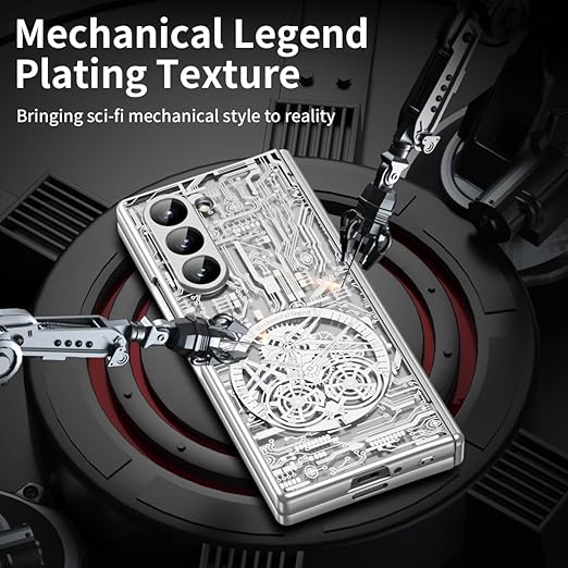 XIMAND for Samsung Galaxy Z Fold 6 ケース、メカニカル レジェンド パターン、フロント スクリーン プロテクター - 洗練されたデザイン、ホログラフィック テクスチャ、メッキ折りたたみ式で 360 度完全保護。(シルバー) a