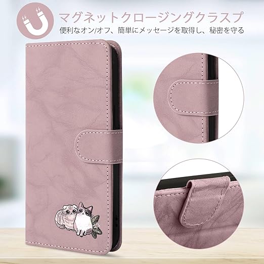 KW-LINK Redmi Note 13 Pro+ 5G ケース 手帳型 Redmi Note 13 Pro Plus 5G カバー 可愛い 猫柄 レドミ ノート13プロプラス 5G 携帯カバー 落ち着いた色 薄型 軽量 Note13Pro+ ケース カード収納 肌感レザー Xiaomi Redmi Note 13 Pro+ 5G スマホケース スタンド機能 マグネット式 耐衝撃(ピンク) a