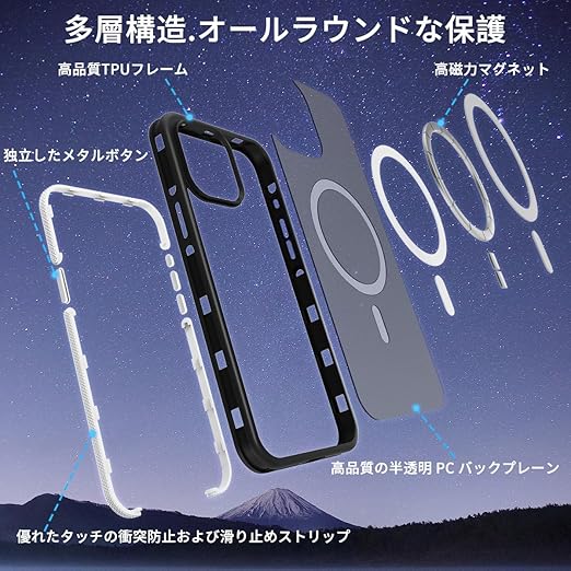 【MagSafe対応・超強力な磁力】 ハイパワーマグネット内蔵、でいくら振っても落ちません。自動位置合わせとしっかりと吸着が可能になり。すべ