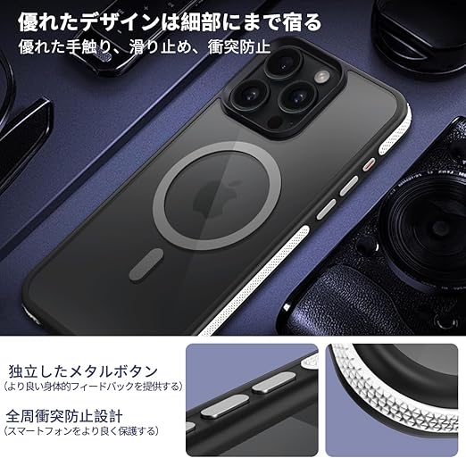 【対応機種】 iPhone 15 Pro(6.1インチ)用 MagSafe ケース。ご希望の商品、カラー、対応機種を十分ご確認の上、ご注文頂きますようお願い申し上げます。これはcoiwanyungの新製品です、MagSafe機能搭載。ソフト TPU、半透明 PC バックパネル、したメタルボタン、滑り止め衝突防止ストリップで構成されるフォーインワン構造設計。