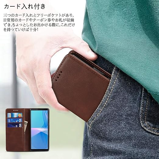 Xperia 10 III ケース 手帳型 Xperia10III ソニー SO-52B docomo SOG04 au A102SO カバー 対応 エクスぺリア Xperia 10 lll 手帳 xperia10iii SO52B エクスぺリア Xperia103 エクスぺリア10III スマホケース case 適用 iCoverCase マグネット カード 落ち着いた レトロ ダークブラウン a