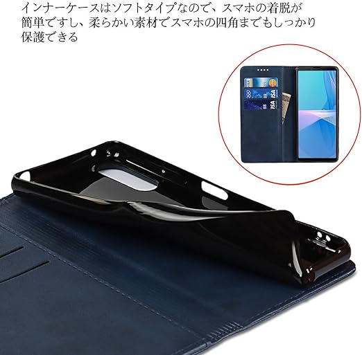 Xperia 10 III ケース 手帳型 Xperia10III ソニー SO-52B docomo SOG04 au A102SO カバー 対応 エクスぺリア Xperia 10 lll 手帳 xperia10iii SO52B エクスぺリア Xperia103 エクスぺリア10III スマホケース case 適用 iCoverCase マグネット カード 落ち着いた色 レトロ ネイビー a