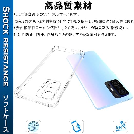 『全面保護』Xiaomi 11T Pro 用のケース Xiaomi 11T 用の保護カバー 薄型 TPU材質 『四隅がエアクッション構造』 耐衝撃 ケース スマホケース 黄変防止/滑り止め/擦り傷防止/柔軟/光沢感/軽?薄/透明 a