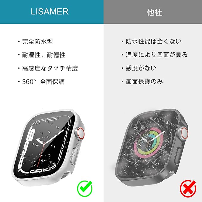 LISAMER 対応 Apple Watch ケース Series 11/10/9/8/SE/7/6/5/4 42mm アップルウォッチ用 ケース 防水 一体型 新デザイン 3D直角エッジ 超薄型 PC+ガラス素材 高透過率 対応 Apple Watch カバー 全面保護 装着簡単 高耐久 耐衝撃 シルバー a