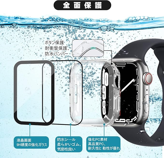 【全面保護カバー】:このApple Watch ケースの液晶保護フィルムは硬度9Hの強化ガラスを採用し、アップルウォッチ カバーのフレームはPC(ポリカーボネート)素材で構成されており、耐傷性、耐衝撃性に優れ、ア