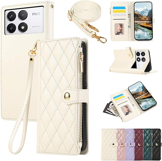 For Xiaomi Poco F6 Pro/Poco X6 Pro ケース 手帳型 Redmi K70/K70E ケース ポコ F6 Pro ショルダー ひし形柄 Poco F6 Pro カバー 人気 女性 ポコF6プロ ケース 肩掛け カード収納 ジップ付き財布 横置き機能 シンプル お洒落 スマホケース (パールホワイト) a