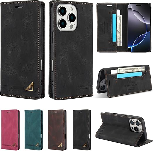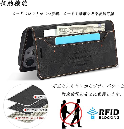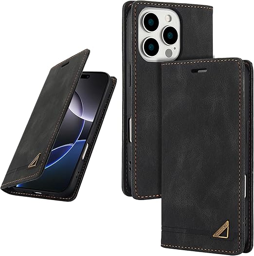 UnivoColors iPhone 15 Pro 手帳型ケース 高級合皮 スタンド機能 カード収納 マグネット式 TPUソフトカバー 全面保護 カメラ保護 衝撃吸収 RFIDブロッキング おしゃれ カバー(ブラック) a
