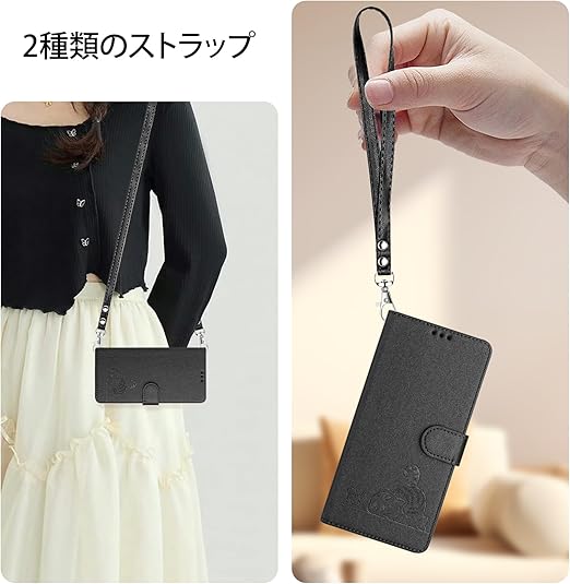 iffeenny redmi note 13 pro 5g ケース 手帳型 可愛い 耐衝撃 redmi note 13 pro ケース 調節可能なショルダーストラップ xiaomi note 13 pro ケース xiaomi redmi note 13 pro 5g ケース 斜めがけ 薄型軽量 肌触り良い かわいい子猫とネズミの柄 カード収納 a