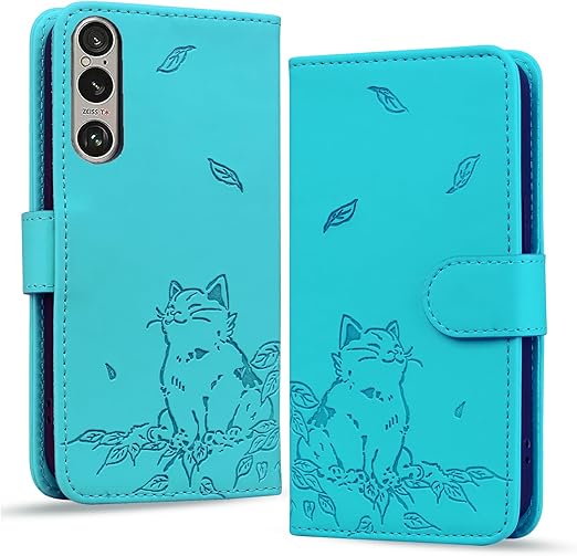 Vokpok Sony Xperia 1 VI ケース 手帳型 上質PUレザーXperia 1 VI SO-51E/SOG13 財布型 ケース カード収納軽量薄型 エクスペリア 1 VI ケース スタンド機能付き Xperia 1 VI ケース 耐摩擦 耐衝撃 全面保護 エクスペリア 1 VI ケース 手帳型 かわいい肥えた猫と秋葉 Xperia 1 VI 対応 6.5インチ,シアン a