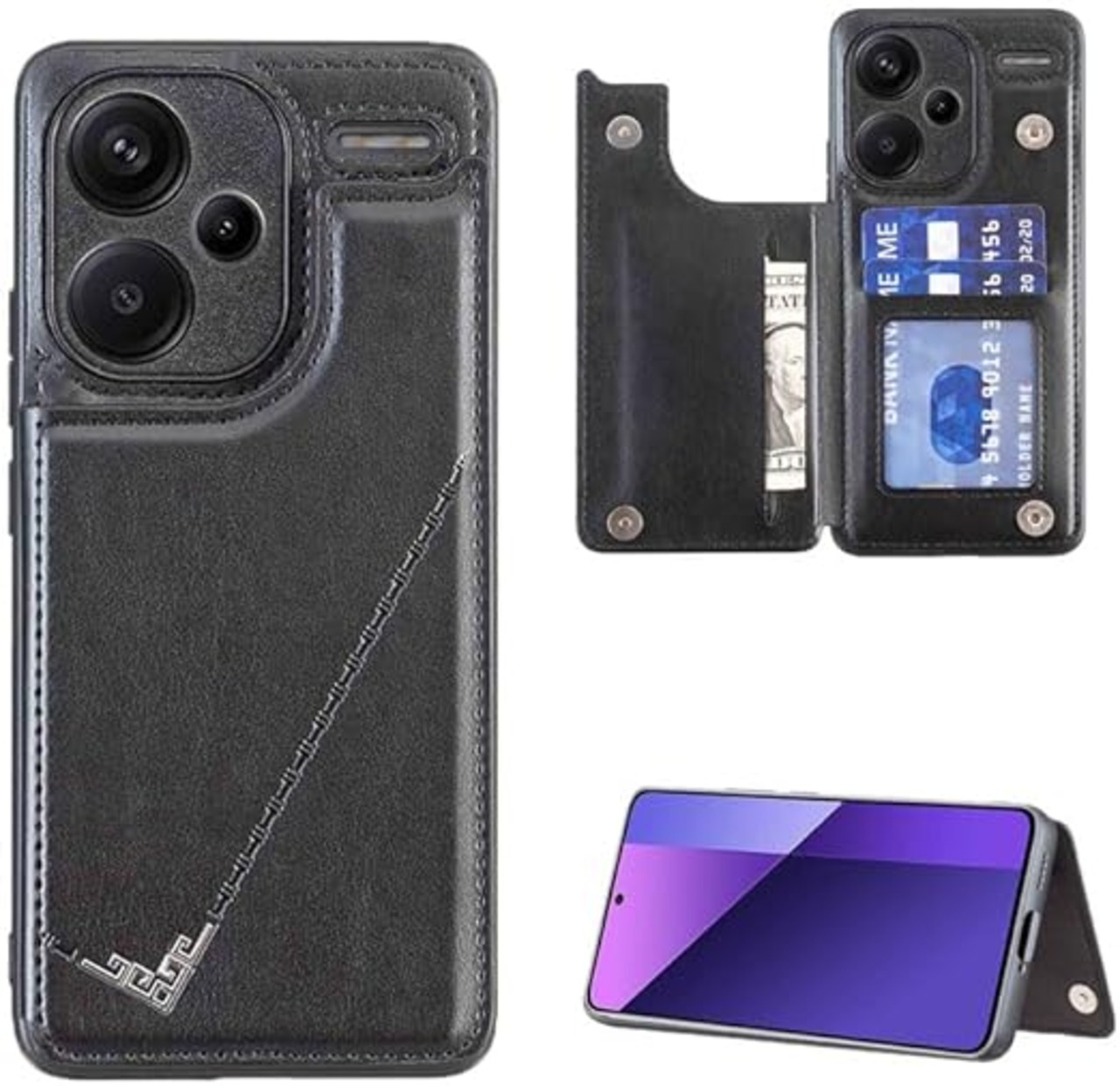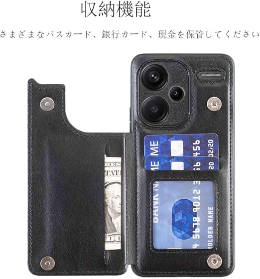 【Suumii】 手帳型 Redmi Note 13 Pro+ 5G用 背面 手帳 カードケース ランヤード付 背面カバーRedmi Note 13 Pro Plus 5G(ブラック) スマホケース サイドマグネット カード収納 横置き機能 PUレザー 財布型 携帯カバー XiaomiRedmiNote13Pro+ 5G(6.67インチ)黒 a