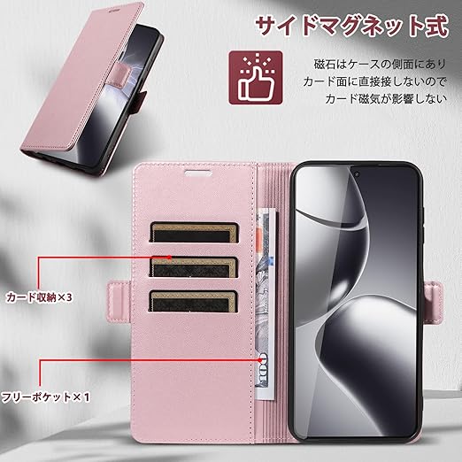 CeiLarv コンパチブル Xiaomi 14T Pro 5G A402XM ケース 手帳型 用 マグネット開閉式 スマホケース 財布型 カードポケット付き 携帯カバー ケース 耐衝撃 ビジネス風 スタンド機能 高級PUレザー 全面保護 シャオミ 14T Pro 2407FPN8ER XIG07 Case 対応 - ピンク a