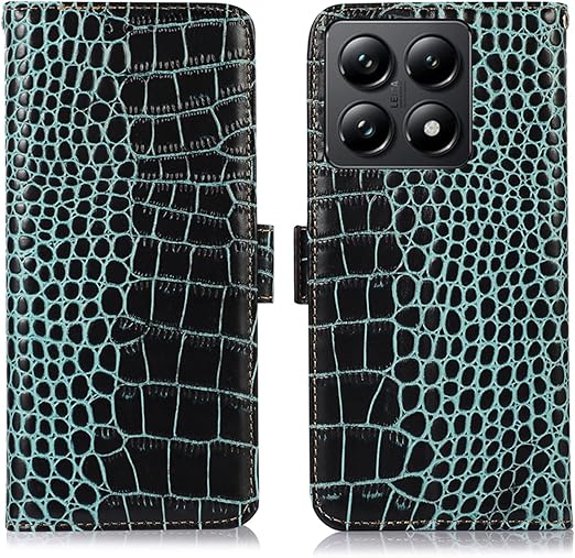 For Xiaomi 14T Pro ケース 手帳型 本革 ワニ柄 14T プロ 牛革 財布型 鰐柄 クロコダイル柄 耐衝撃 [RFIDブロッキング] カード収納 マグネット式ボタン 横置きスタンド機能 便利 財布型携帯 スマホケース 水色 Rureu