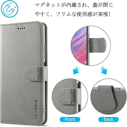 For Xiaomi 14T Pro ケース 手帳型 14T プロ 手帳 ケース 高級PUレザー 衝撃吸収 全面保護 横置きスタンド機能付 財布型 携帯ケース カード収納 上品な シンプル気質 グレー Rureuu a