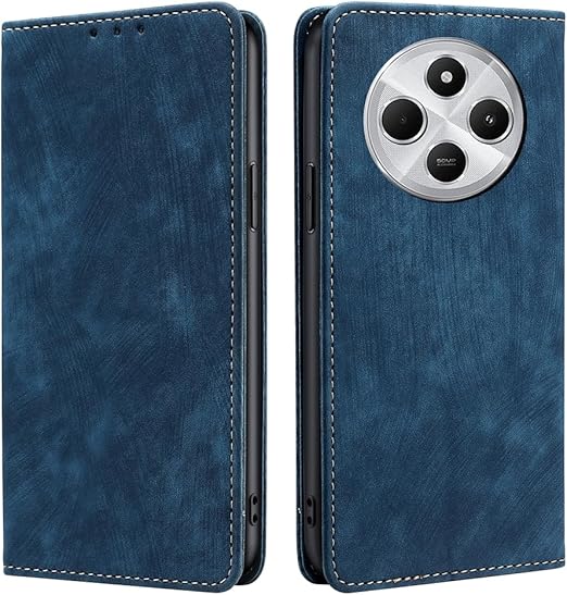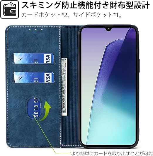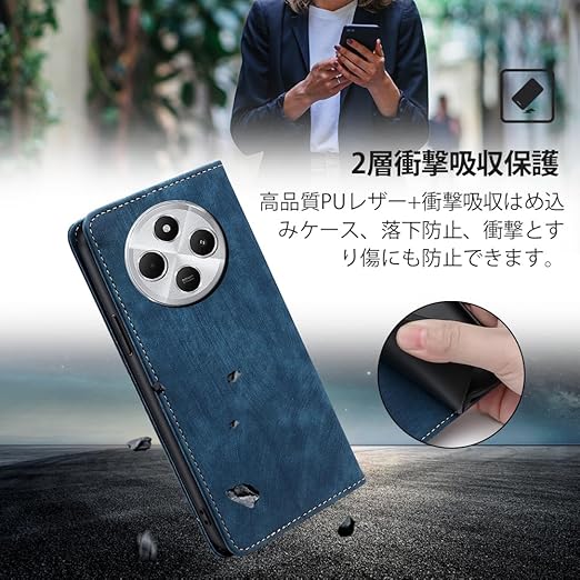 AiMaoo Xiaomi Redmi 14C 対応 ケース 防塵 耐衝撃 傷つけ防止 軽量 手作り PUレザー カード収納 RFID磁気防止 マグネット スタンド機能 ケース 手帳型 Xiaomi Redmi 14C 用 (ブルー) a