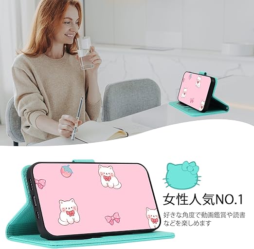 Kedic Xiaomi 14T ケース 手帳型 大きな花の顔の猫のパターン ケース シャオミ14T ケース Xiaomi 14T カバー Xiaomi 14T スマホケース 手帳型 シャオミ 14T ケースカバー の選択 指紋なし 適度な厚さ 軽量グリップ 柔軟性 より包括的な保護 スマホ スタンド グリーン a