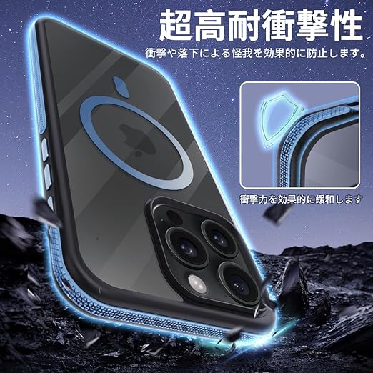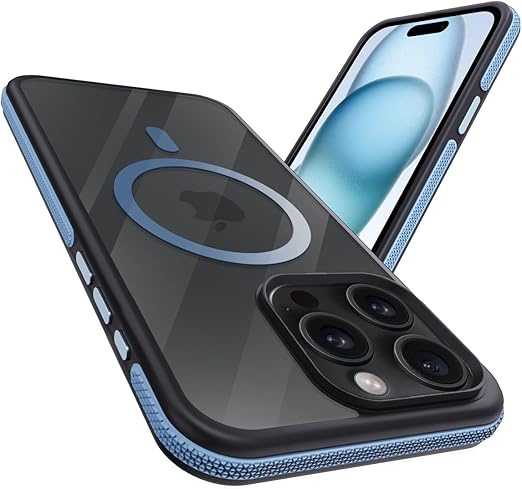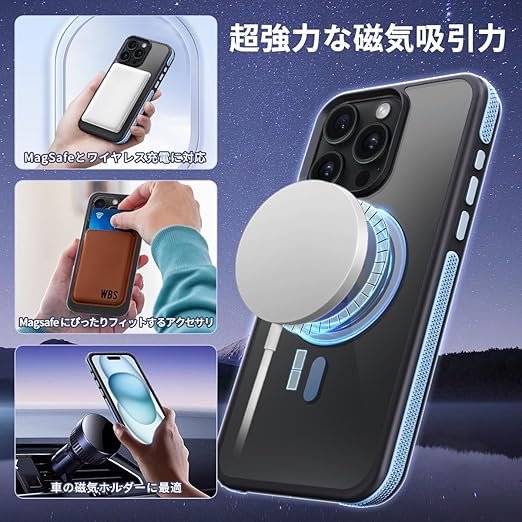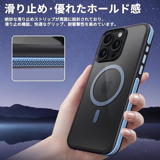 coiwantung iPhone 15 Pro MagSafe ケース 耐衝撃 滑り止め アイフォン 15Pro スマホケース 【新しい衝突防止ストリップ設計】[フォーインワン構造設計]米軍MIL規格 カバー 軽量 ワイヤレス充電対応 半透明 滑り止めエッジ 薄型 落下保護(ブルー) a