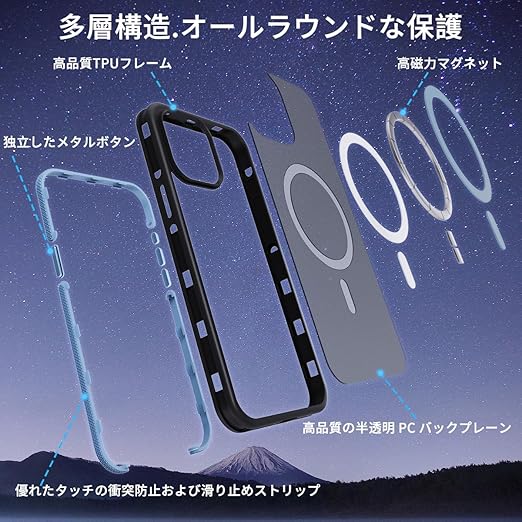 【MagSafe対応・超強力な磁力】 ハイパワーマグネット内蔵、でいくら振っても落ちません。自動位置合わせとしっかりと吸着が可能になり。すべ