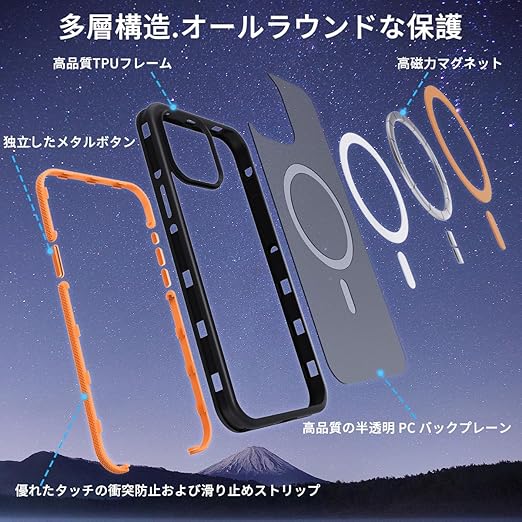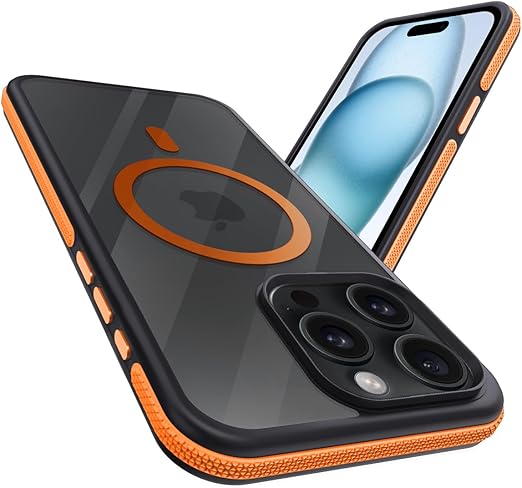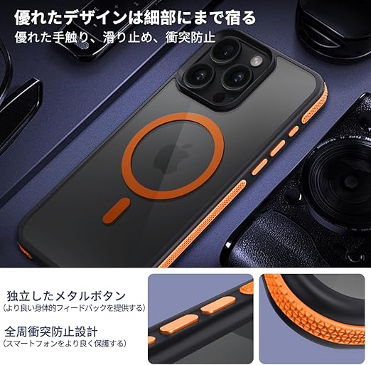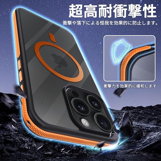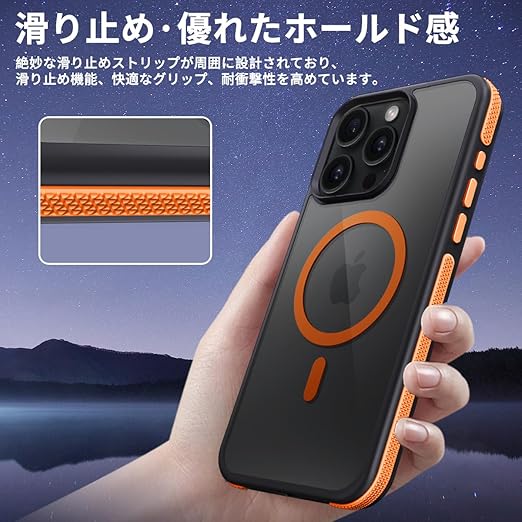 coiwantung iPhone 15 Pro MagSafe ケース 耐衝撃 滑り止め アイフォン 15Pro スマホケース 【新しい衝突防止ストリップ設計】[フォーインワン構造設計]米軍MIL規格 カバー 軽量 ワイヤレス充電対応 半透明 滑り止めエッジ 薄型 落下保護 (オレンジ) a